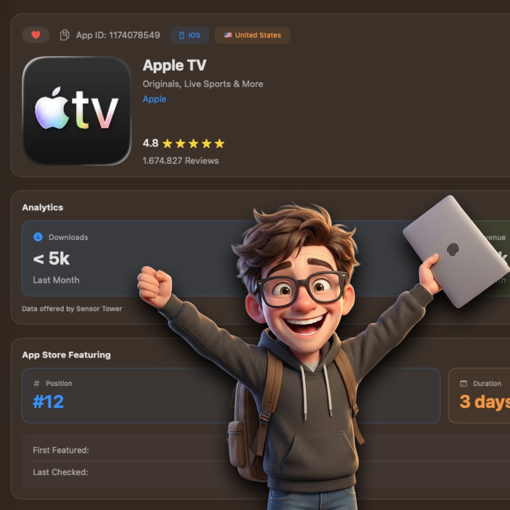 Research any app in the App Store. Uncover their downloads, revenue, keyword rankings, and marketing strategies—all from one powerful dashboard.